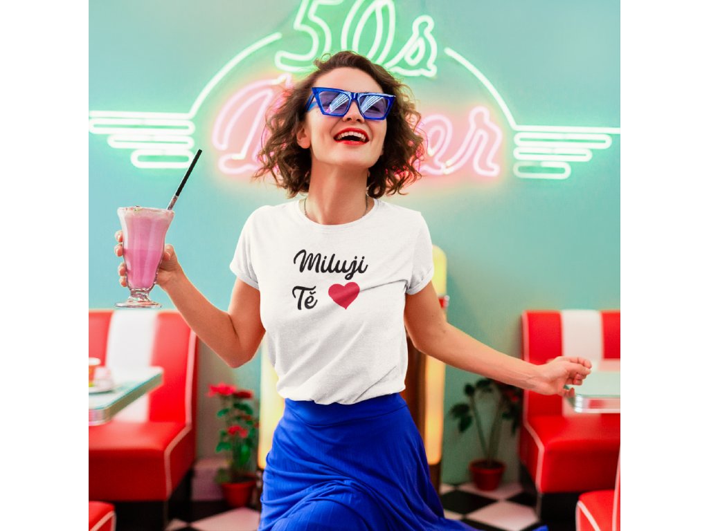 Dámské tričko Miluji tě. Vhodné jako dárek k narozeninám nebo k Valentýnu.