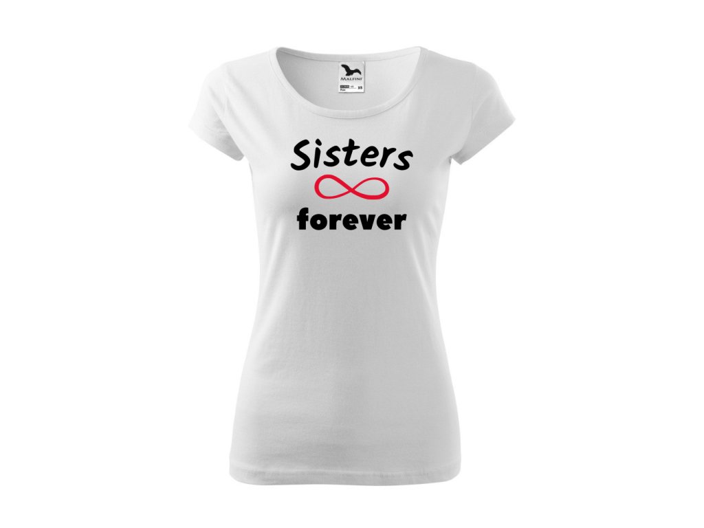Dámské tričko Sisters forever v bílé barvě. Potěšte sebe a svoje kámošky dárkem k narozeninám nebo jen tak. Triko s potiskem je originální a vtipný dárek k narozeninám.