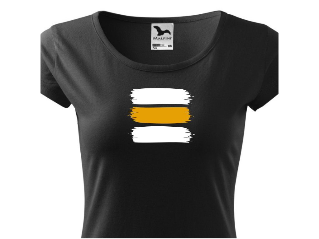 Dámské tričko pro turisty Žlutá turistická značka. Darujte tričko své turistce. Triko s potiskem je originální a vtipný dárek.