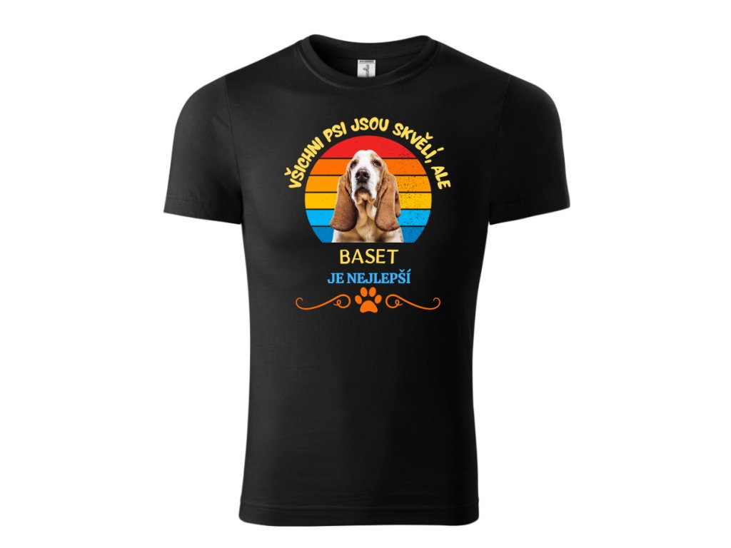 Originální dětské tričko s motivem plemene Baset. Tričko s potiskem je vhodné jako dárek k narozeninám nebo k Vánocům.