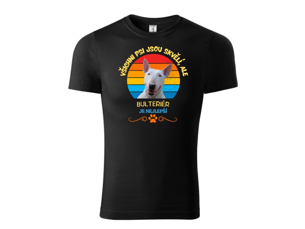 Originální dětské tričko s motivem plemene Bulteriér. Tričko s potiskem je vhodné jako dárek k narozeninám nebo k Vánocům.