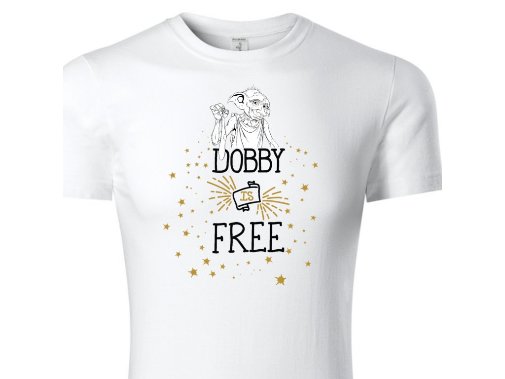 Dětské originální tričko s filmovým motivem Dobby is free. Tričko s potiskem je originální a vtipný dárek například k narozeninám, Vánocům nebo jen tak.