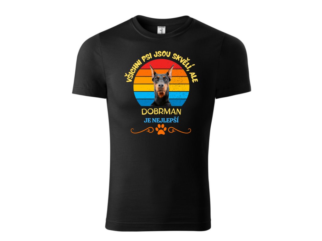 Originální dětské tričko s motivem plemene Dobrman. Tričko s potiskem je vhodné jako dárek k narozeninám nebo k Vánocům.