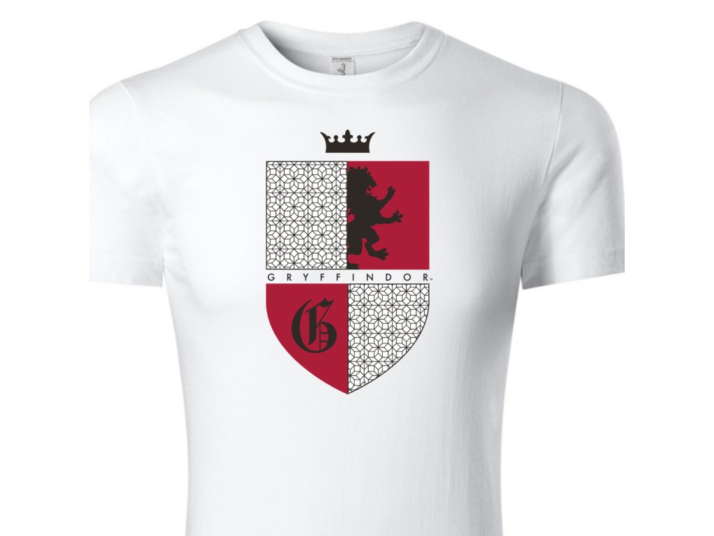 Dětské originální tričko s filmovým motivem Gryffindor štít. Tričko s potiskem je originální a vtipný dárek například k narozeninám, Vánocům nebo jen tak.