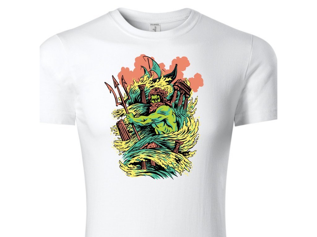 Originální dětské tričko s motivem řecké mytologie Poseidon. Tričko s potiskem je vhodné jako dárek k narozeninám nebo k Vánocům.