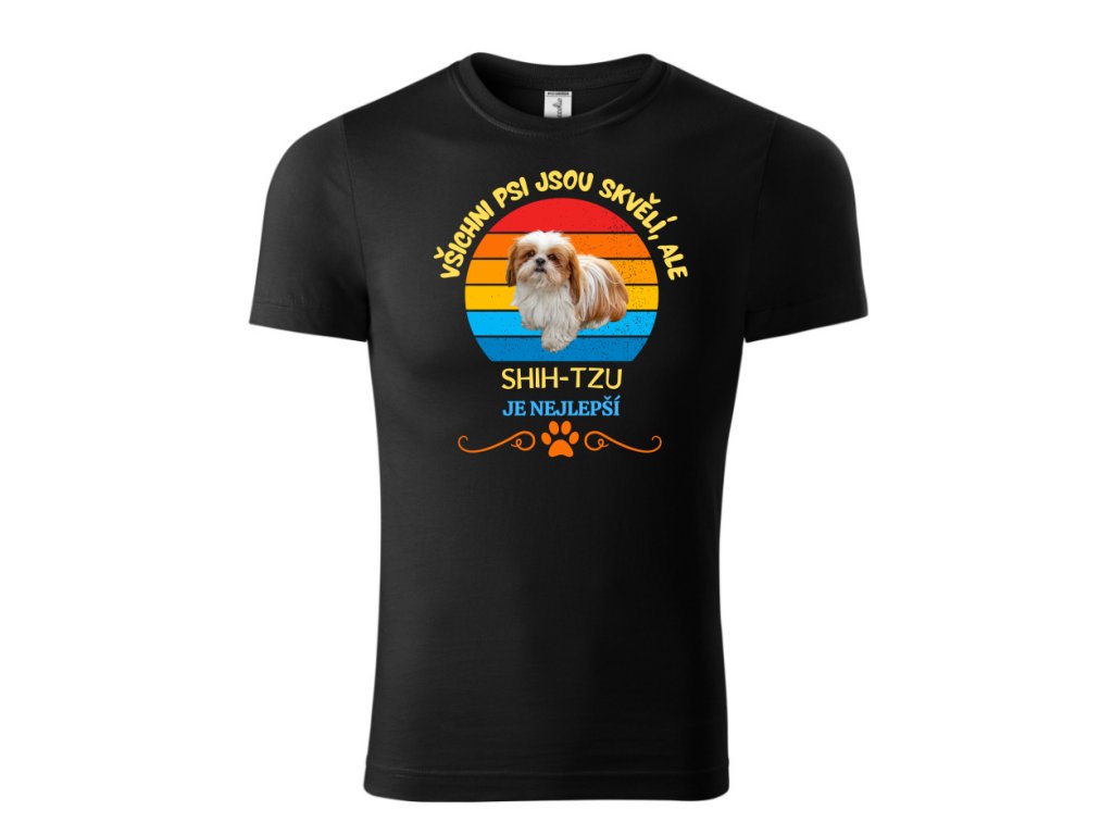 Originální dětské tričko s motivem plemene Shih-tzu. Tričko s potiskem je vhodné jako dárek k narozeninám nebo k Vánocům.