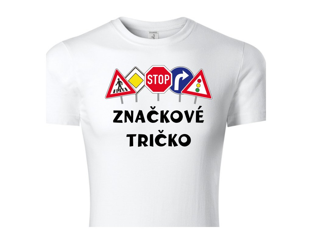 Dětské tričko s motivem Značkové tričko v bílé barvě. Značkové tričko, které bere název doslova. Originální motiv s dopravními značkami a výrazným nápisem pobaví každého. Skvělý tip na dárek. Pohodlné tričko pro každodenní nošení se smyslem pro humor.