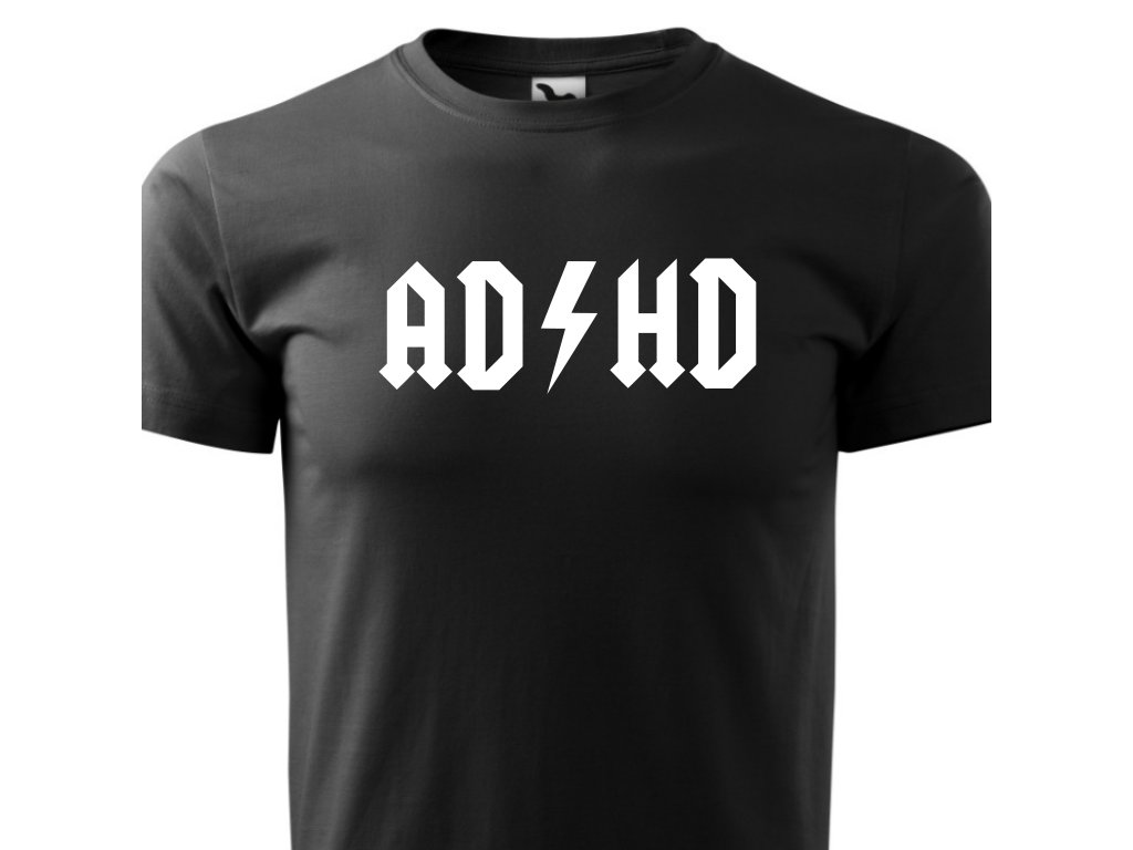 Pánské hudební tričko AD HD v černé barvě. Darujte tričko svým blízkým nebo sobě. Triko s potiskem je originální a vtipný dárek.