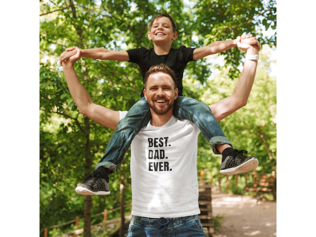 Pánské rodinné tričko Best dad ever v bílé barvě. Potěšte svého tátu dárkem k narozeninám nebo jen tak. Triko s potiskem je originální a vtipný dárek.