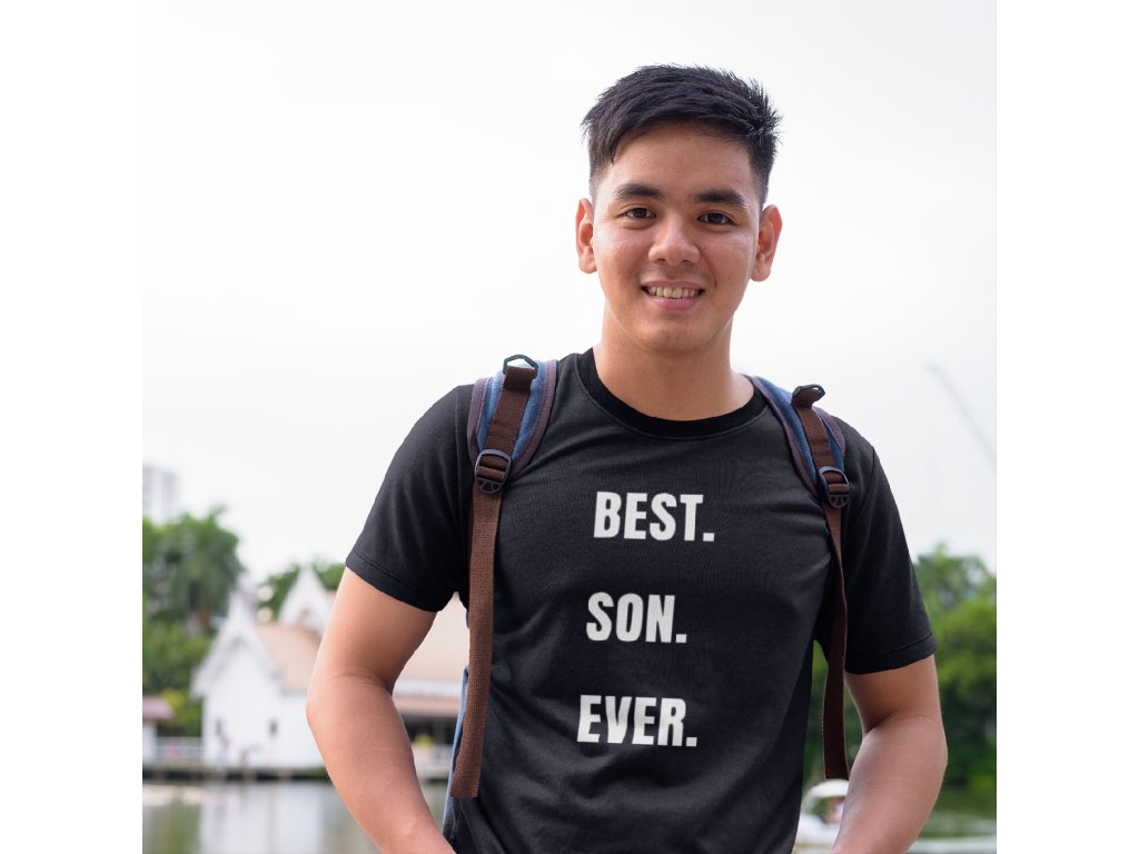 Pánské rodinné tričko Best son ever v černé barvě. Potěšte svého syna dárkem k narozeninám nebo jen tak. Triko s potiskem je originální a vtipný dárek.