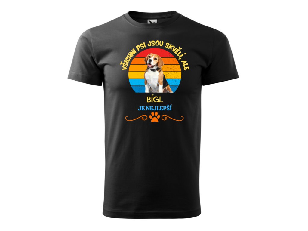 Originální pánské tričko s motivem plemene Bígl. Tričko s potiskem je vhodné jako dárek k narozeninám nebo k Vánocům.