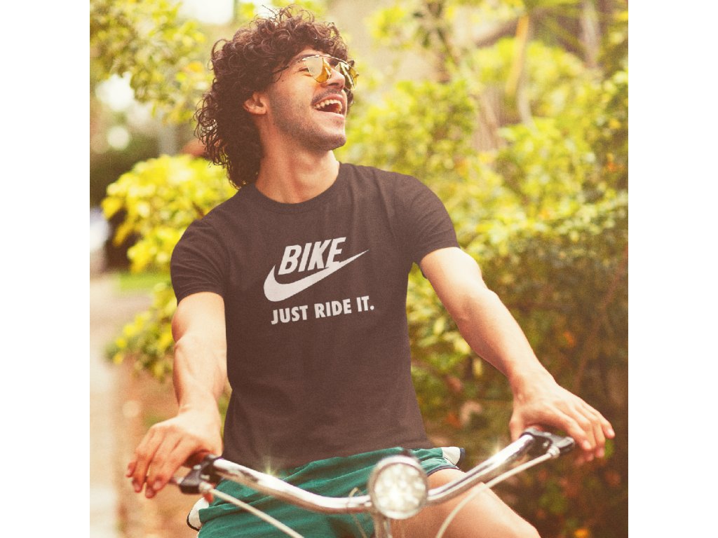 Pánské tričko pro cyklisty Bike just ride it v černé barvě. Darujte tričko svému cyklistovi. Triko s potiskem je originální a vtipný dárek.