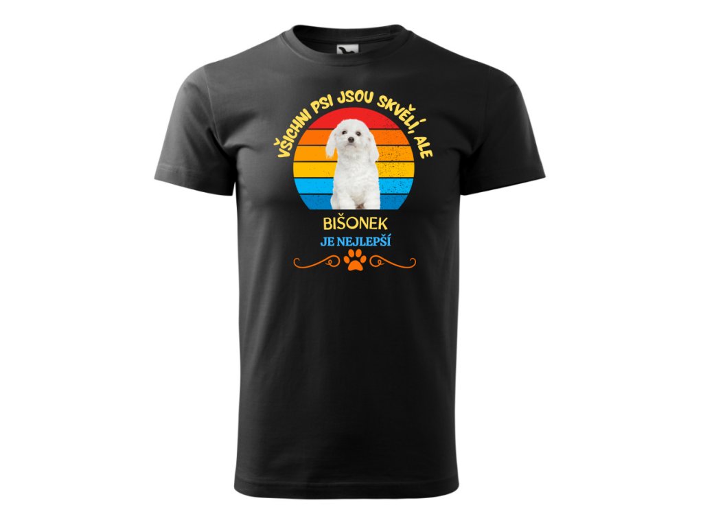 Originální pánské tričko s motivem plemene Bišonek. Tričko s potiskem je vhodné jako dárek k narozeninám nebo k Vánocům.