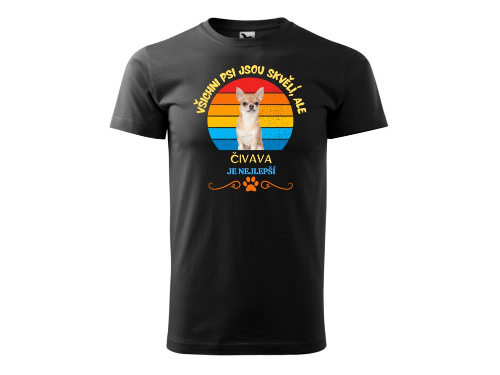 Originální pánské tričko s motivem plemene Čivava. Tričko s potiskem je vhodné jako dárek k narozeninám nebo k Vánocům.