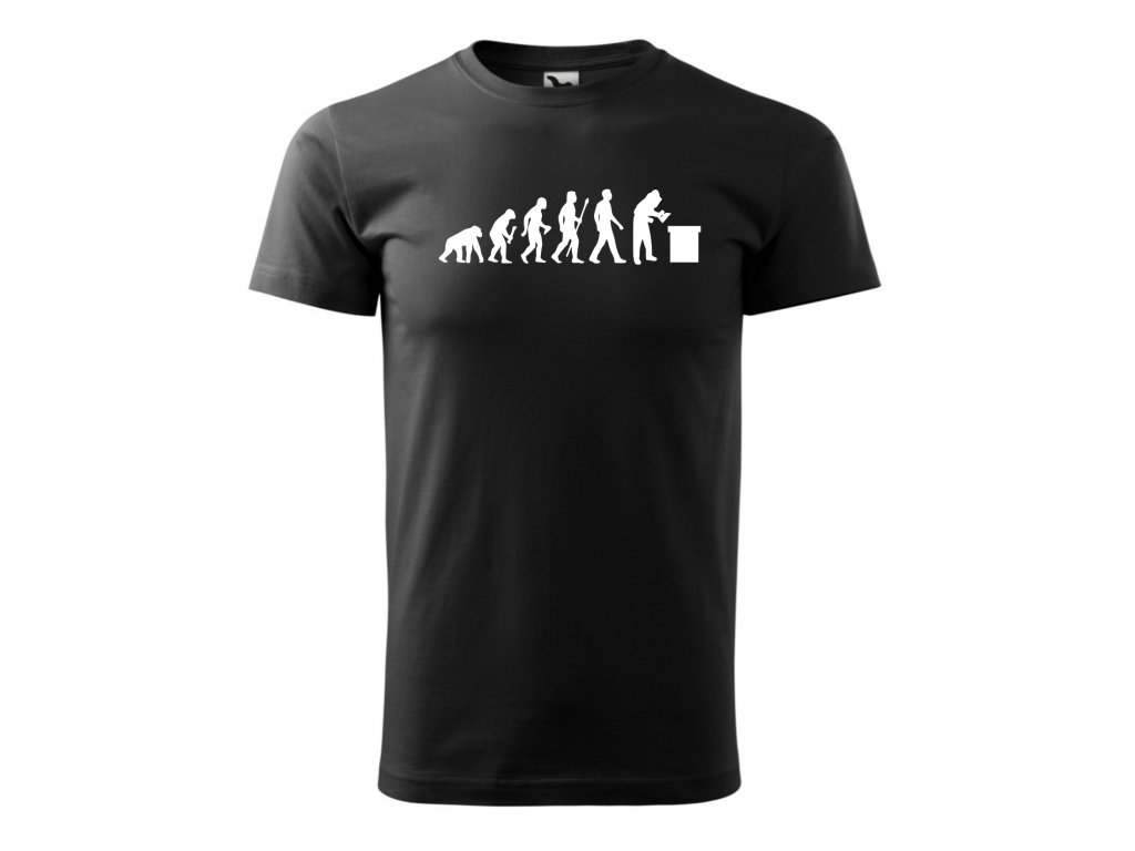Pánské tričko pro včelaře Evoluce včelaře v černé barvě. Darujte tričko svému včelařovi. Triko s potiskem je originální a vtipný dárek.