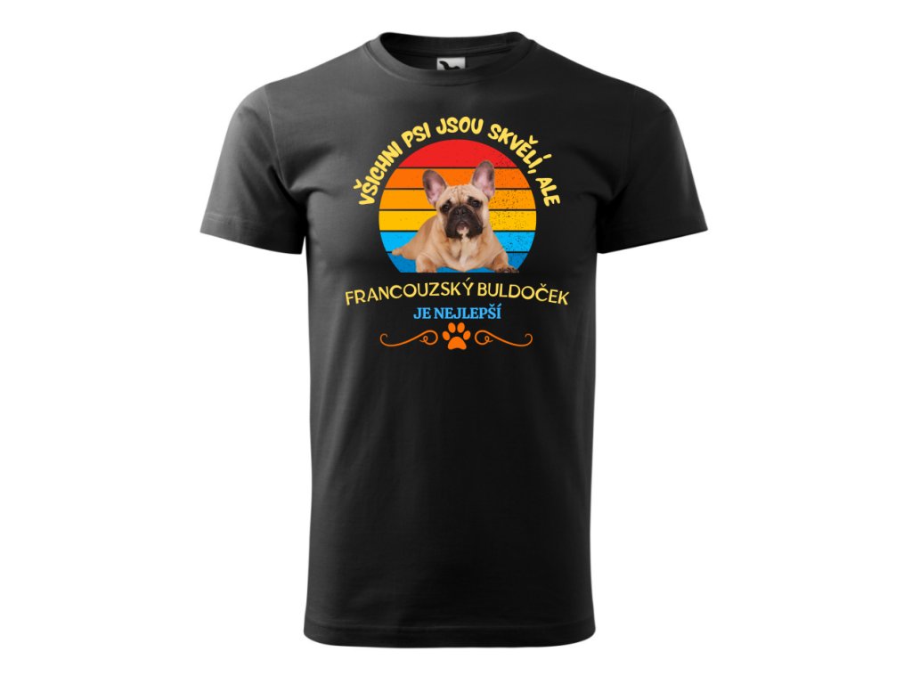 Originální pánské tričko s motivem plemene Francouzský buldoček. Tričko s potiskem je vhodné jako dárek k narozeninám nebo k Vánocům.