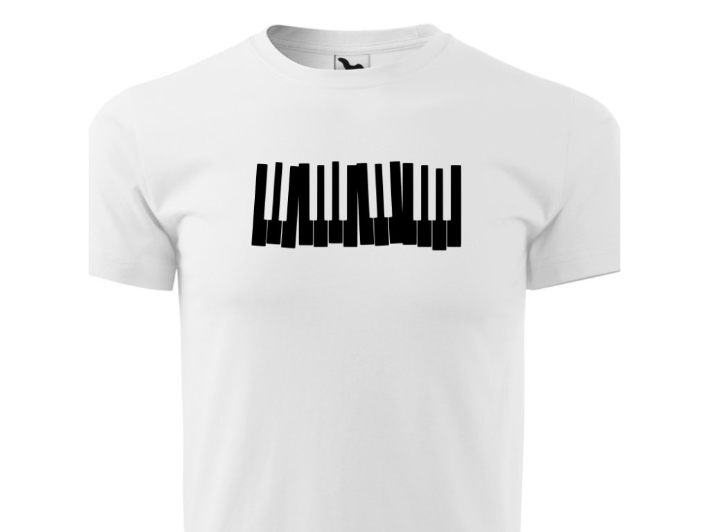 Pánské hudební tričko Klávesy v bílé barvě. Darujte tričko svým blízkým nebo sobě. Triko s potiskem je originální a vtipný dárek.
