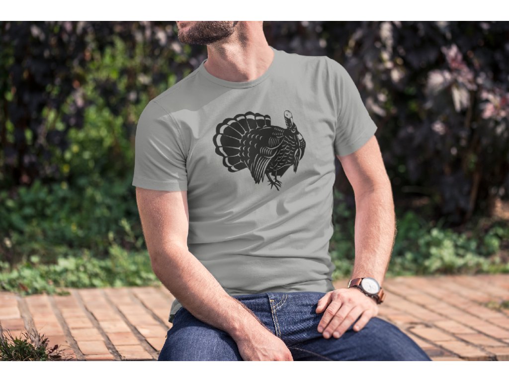 Pánské tričko Krocan v šedé barvě. Triko s potiskem je originální a vtipný dárek.