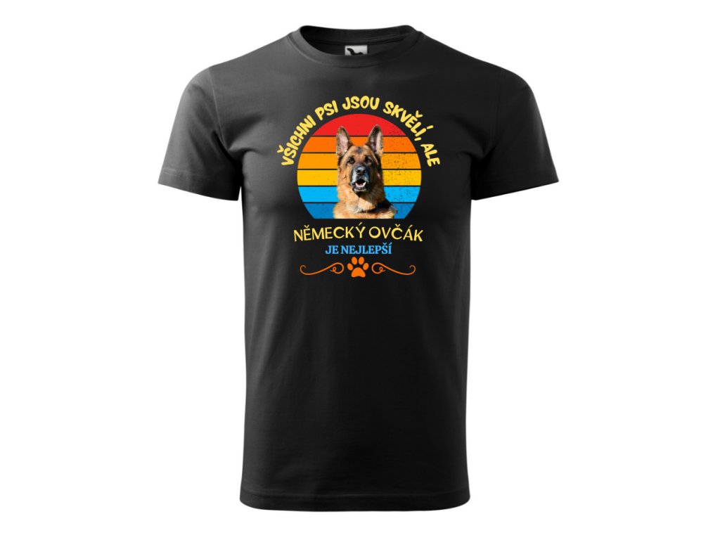 Originální pánské tričko s motivem plemene Německý ovčák. Tričko s potiskem je vhodné jako dárek k narozeninám nebo k Vánocům.