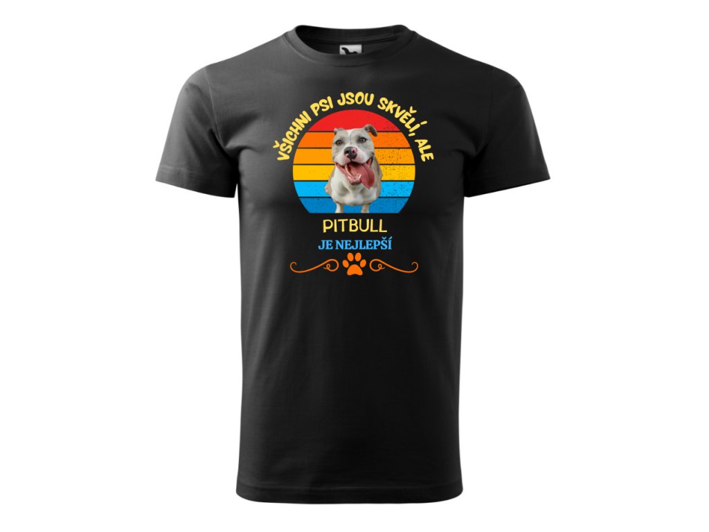 Originální pánské tričko s motivem plemene Pitbul. Tričko s potiskem je vhodné jako dárek k narozeninám nebo k Vánocům.