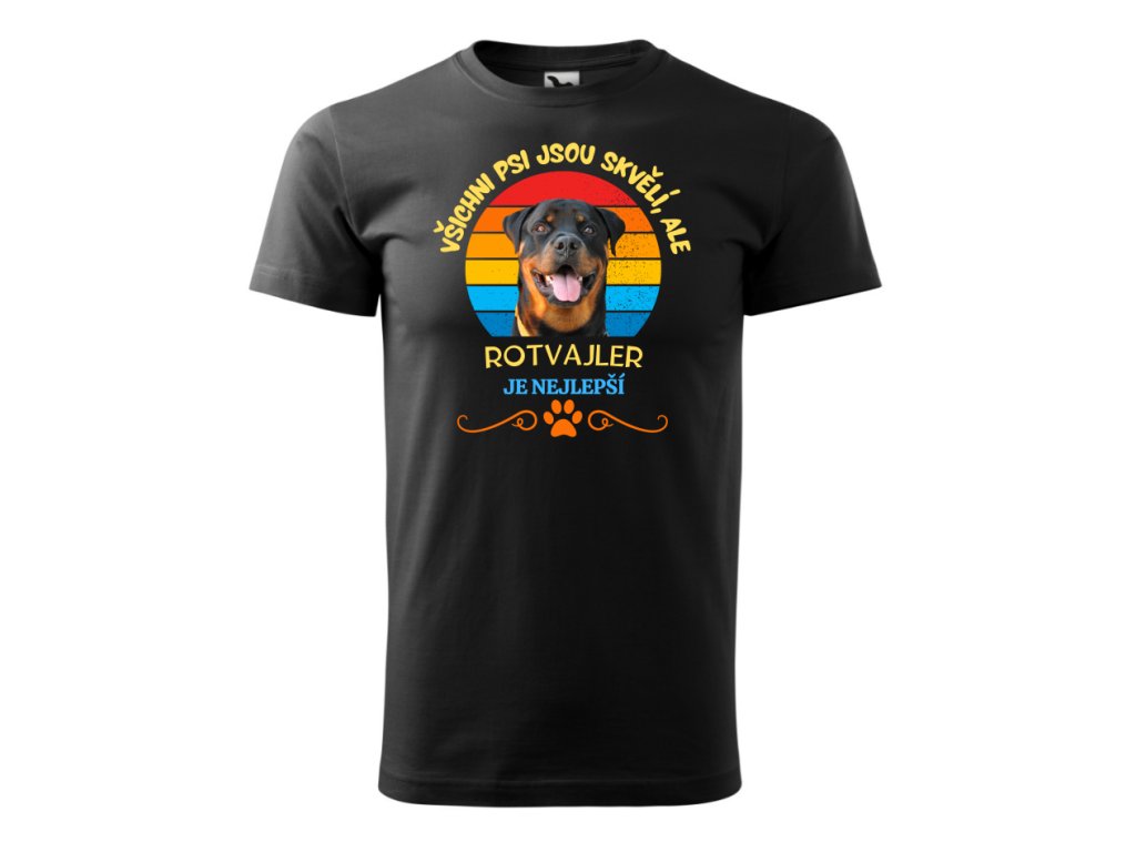 Originální pánské tričko s motivem plemene Rotvajler. Tričko s potiskem je vhodné jako dárek k narozeninám nebo k Vánocům.