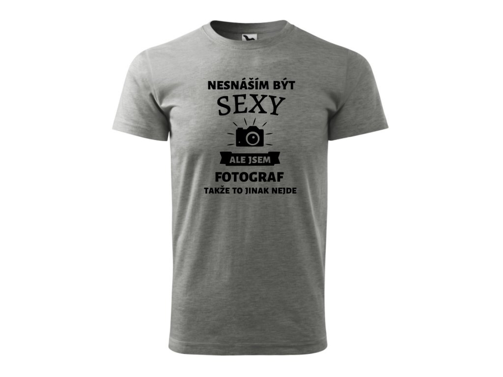 Pánské profesní tričko pro fotografy Sexy fotograf v šedé barvě. Potěšte zábavným tričkem sebe nebo své kamarády. Triko s potiskem je originální a vtipný dárek.