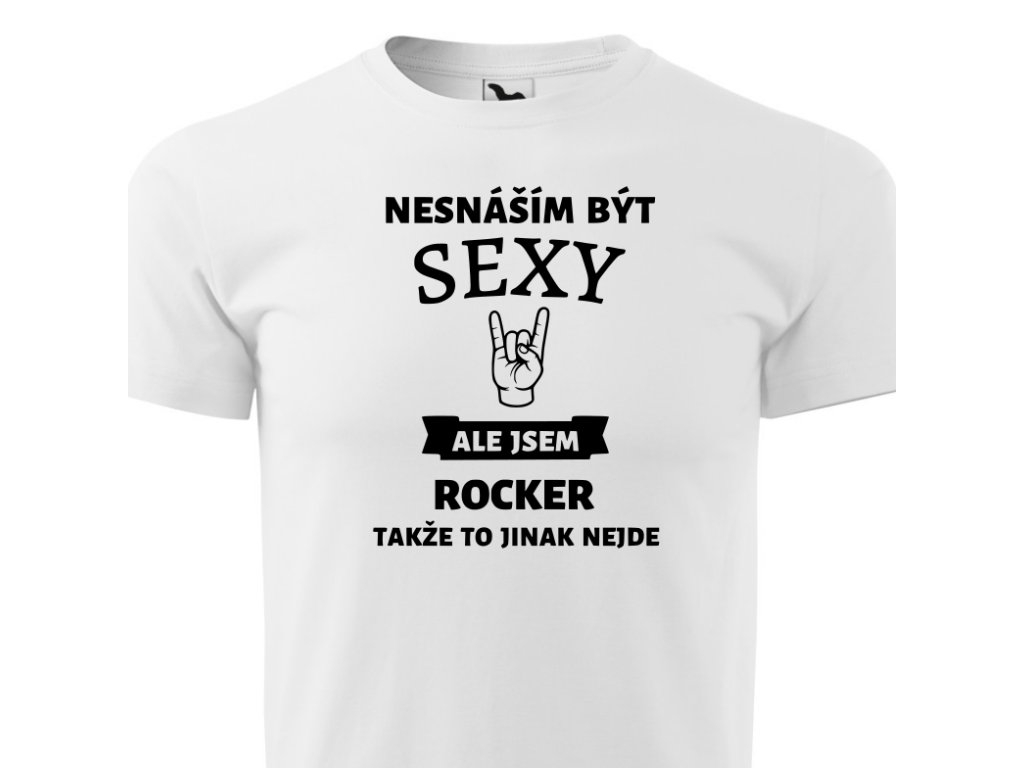 Pánské hudební tričko Sexy rocker v bílé barvě. Darujte tričko svým blízkým nebo sobě. Triko s potiskem je originální a vtipný dárek.