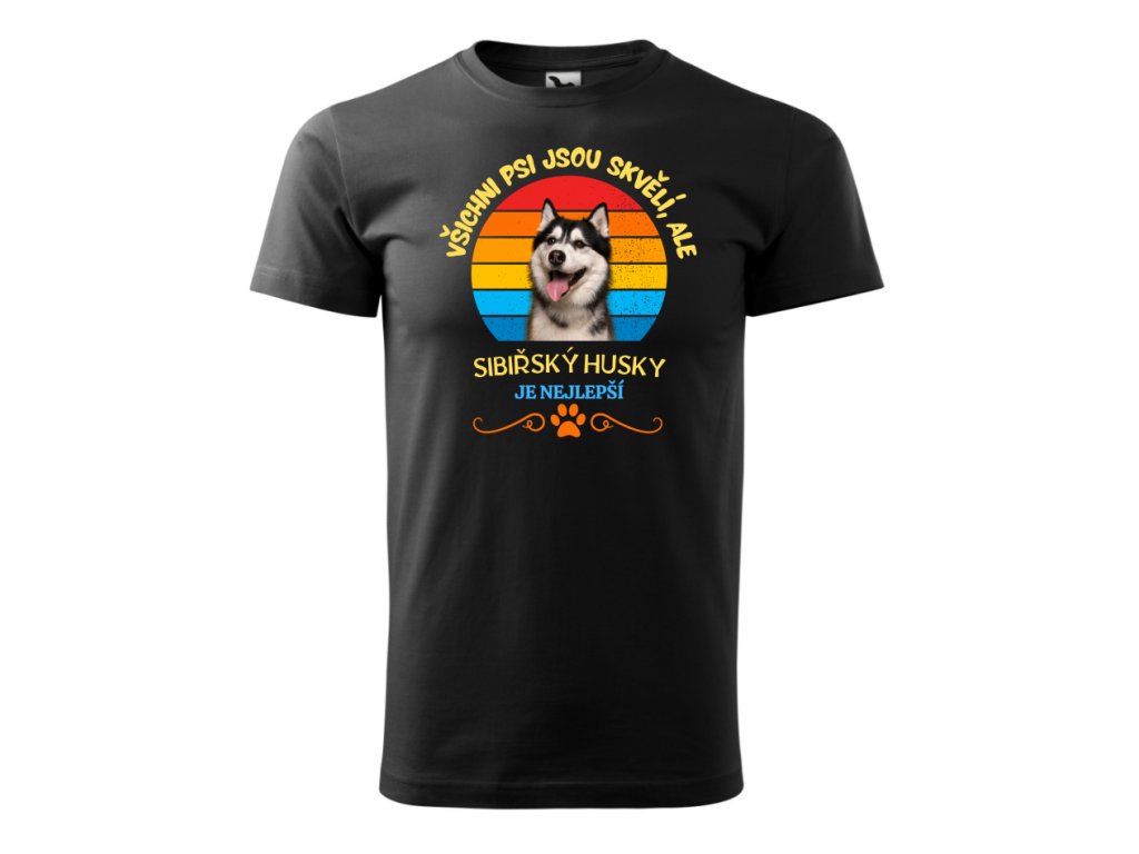 Originální pánské tričko s motivem plemene Sibiřský husky. Tričko s potiskem je vhodné jako dárek k narozeninám nebo k Vánocům.