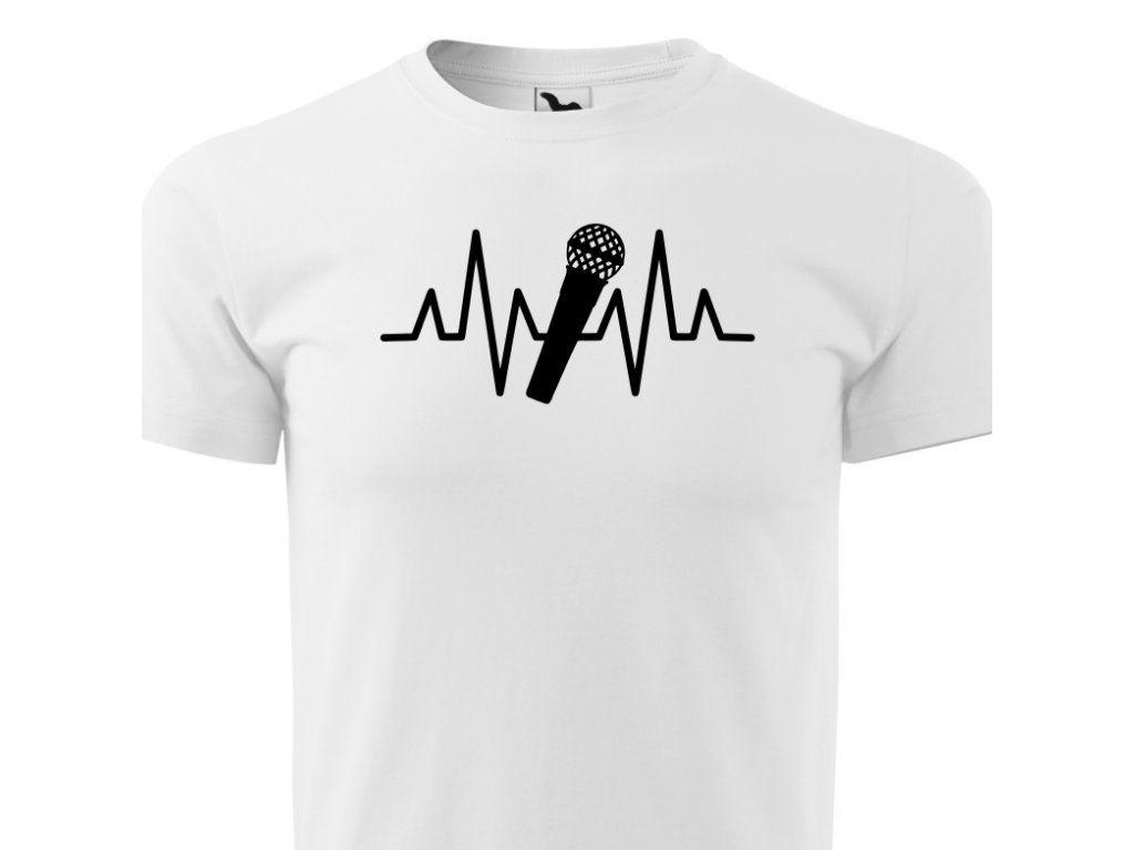 Pánské hudební tričko Tep mikrofon v bílé barvě. Darujte tričko svým blízkým nebo sobě. Triko s potiskem je originální a vtipný dárek.