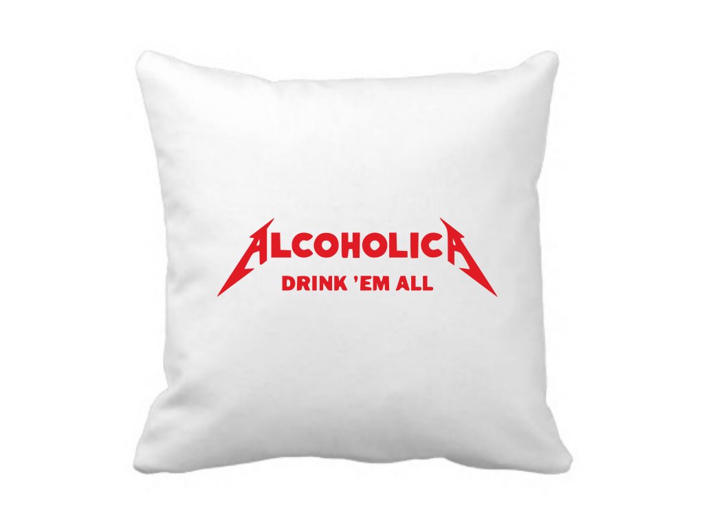 Polštářek pro milovníky hudby Alcoholica. Darujte polštářek svým blízkým nebo sobě. Polštář s potiskem je originální a vtipný dárek.