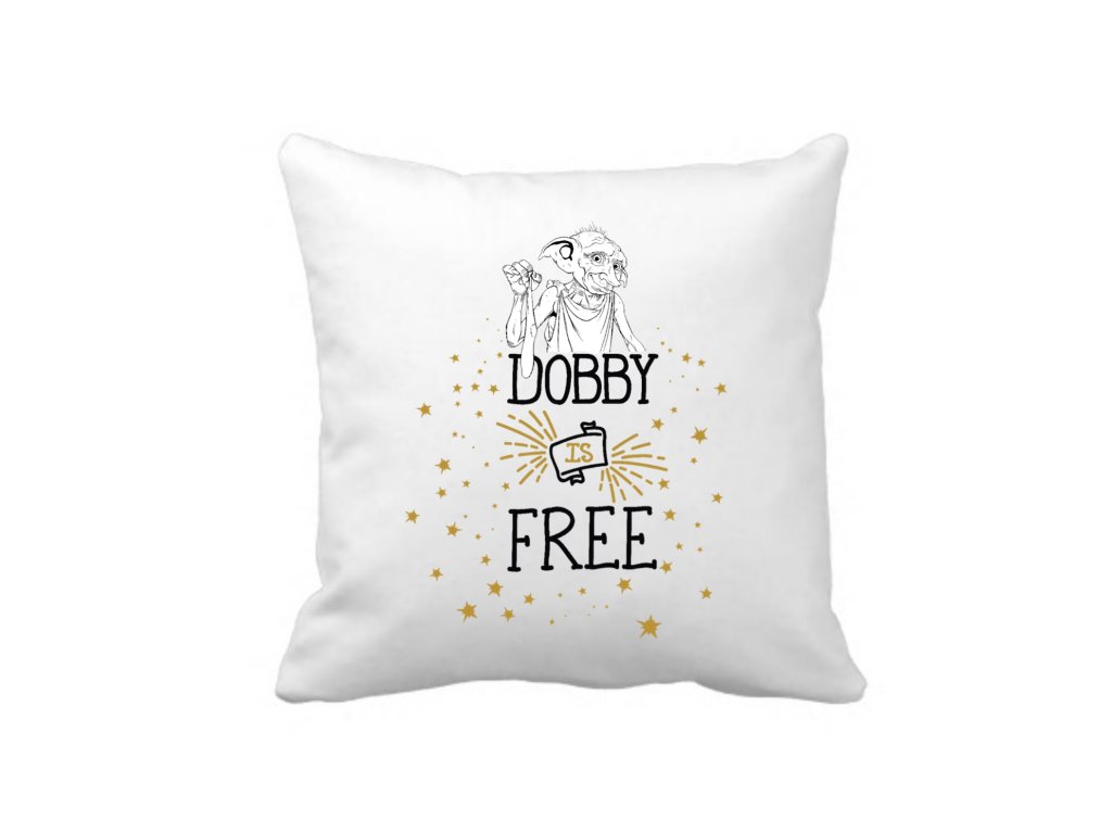 Originální polštářek s filmovým motivem Dobby is free. Potěšte dárkem své blízké. Polštářek s potiskem je originální a vtipný dárek například k narozeninám, Vánocům nebo jen tak.