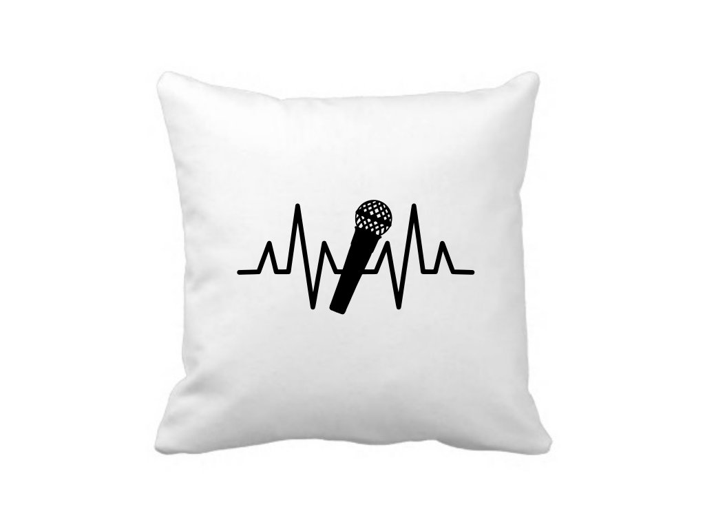 Polštářek pro milovníky hudby Tep mikrofon. Darujte polštářek svým blízkým nebo sobě. Polštář s potiskem je originální a vtipný dárek.